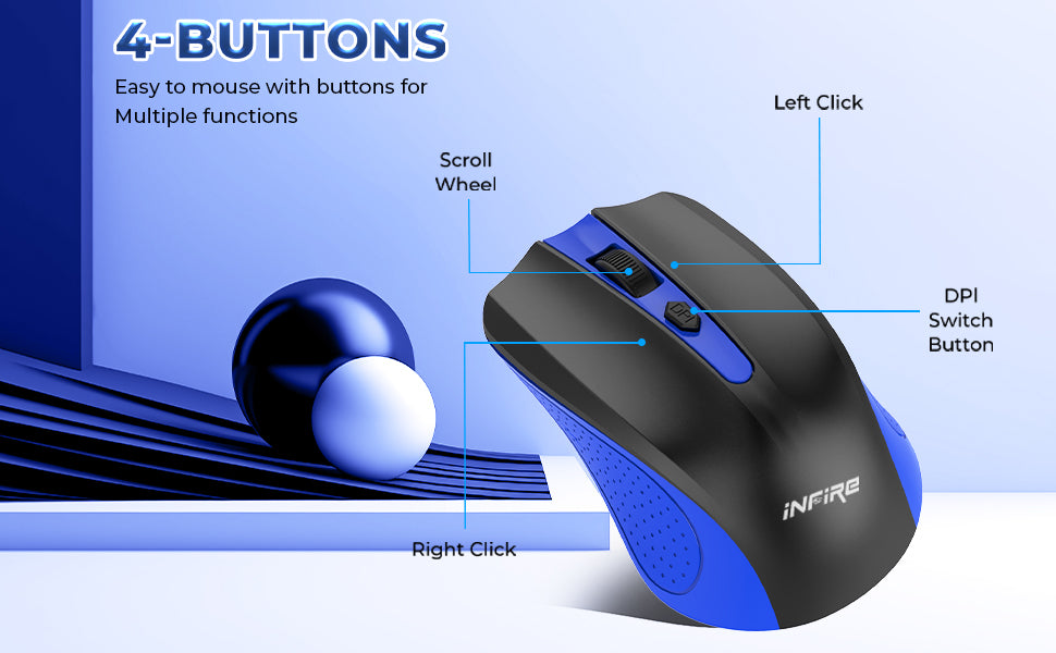 Experience seamless navigation and precision with the iNFiRe Clash Wireless Mouse. With an impressive DPI adjustable to 1600, this mouse allows for smooth and accurate cursor movement. Its 2.4GHz wireless technology provides a stable connection, while the USB nano receiver ensures hassle-free plug and play. The 4 buttons allow for easy and efficient control.