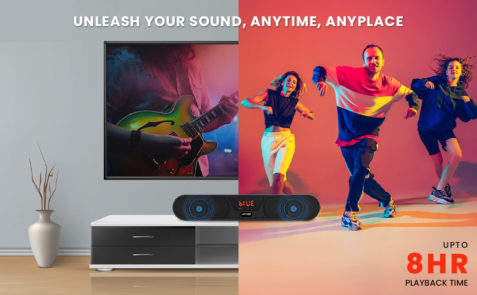 When you choose the FireBar 20, you're getting a Bluetooth soundbar that delivers powerful audio performance. Because it offers up to 8 hours of playtime, you can enjoy uninterrupted music or movies. The FireBar 20 also provides crisp and clear sound quality, so every note feels richer and more detailed. But what sets this device apart is its ability to adapt to different environments, making it versatile for any room.