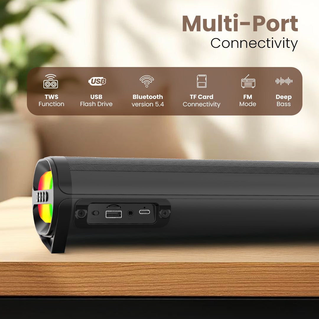 Experience immersive audio with the iNFiRe FireBar 50, a 50W Bluetooth soundbar designed for superior sound quality. Equipped with Bluetooth 5.4 for stable wireless connectivity, it delivers deep bass that enhances your music and movies. The soundbar features vibrant RGB lights to create an engaging atmosphere. Multiple input options including AUX, USB, TF card, and FM radio provide versatile playback choices, making it a comprehensive audio solution for any setup.